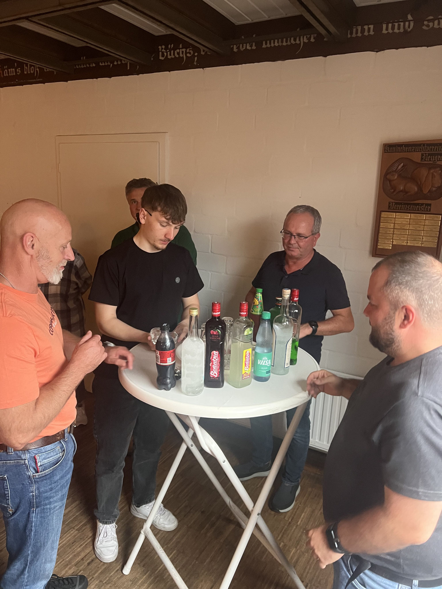 Mit seinen Adjutanten Daniel, André und Florian verwandelte Gerd die Scheune in eine brodelnde Hochburg der Gerstensaftfreude. Für das leibliche Wohl sorgte neben gekühltem Bier auch kulinarisches Grillgut: zartes Nackensteak und würzige Wurst, direkt vom Rost in die Mägen der hungrigen Schützenbrüder.
