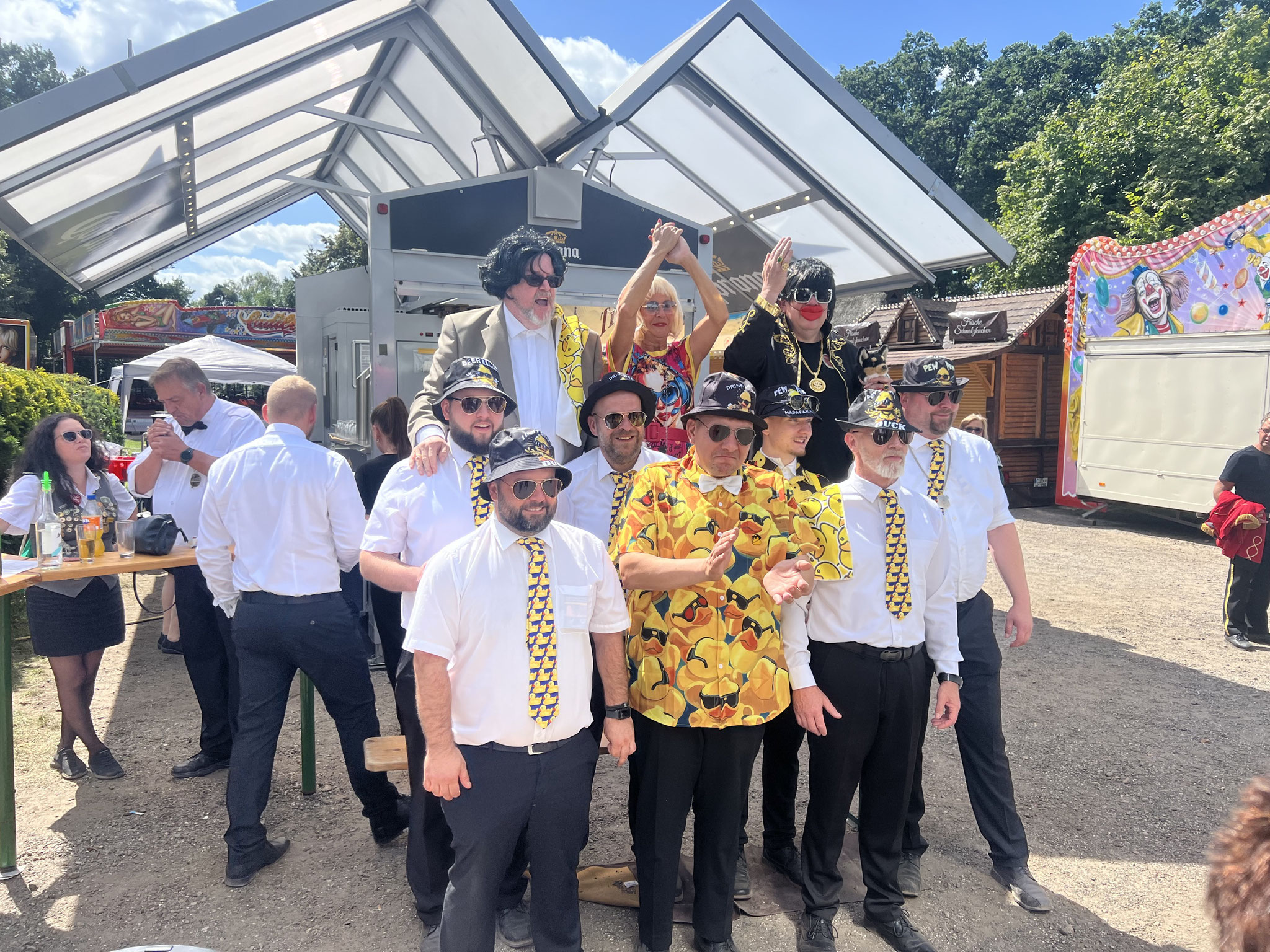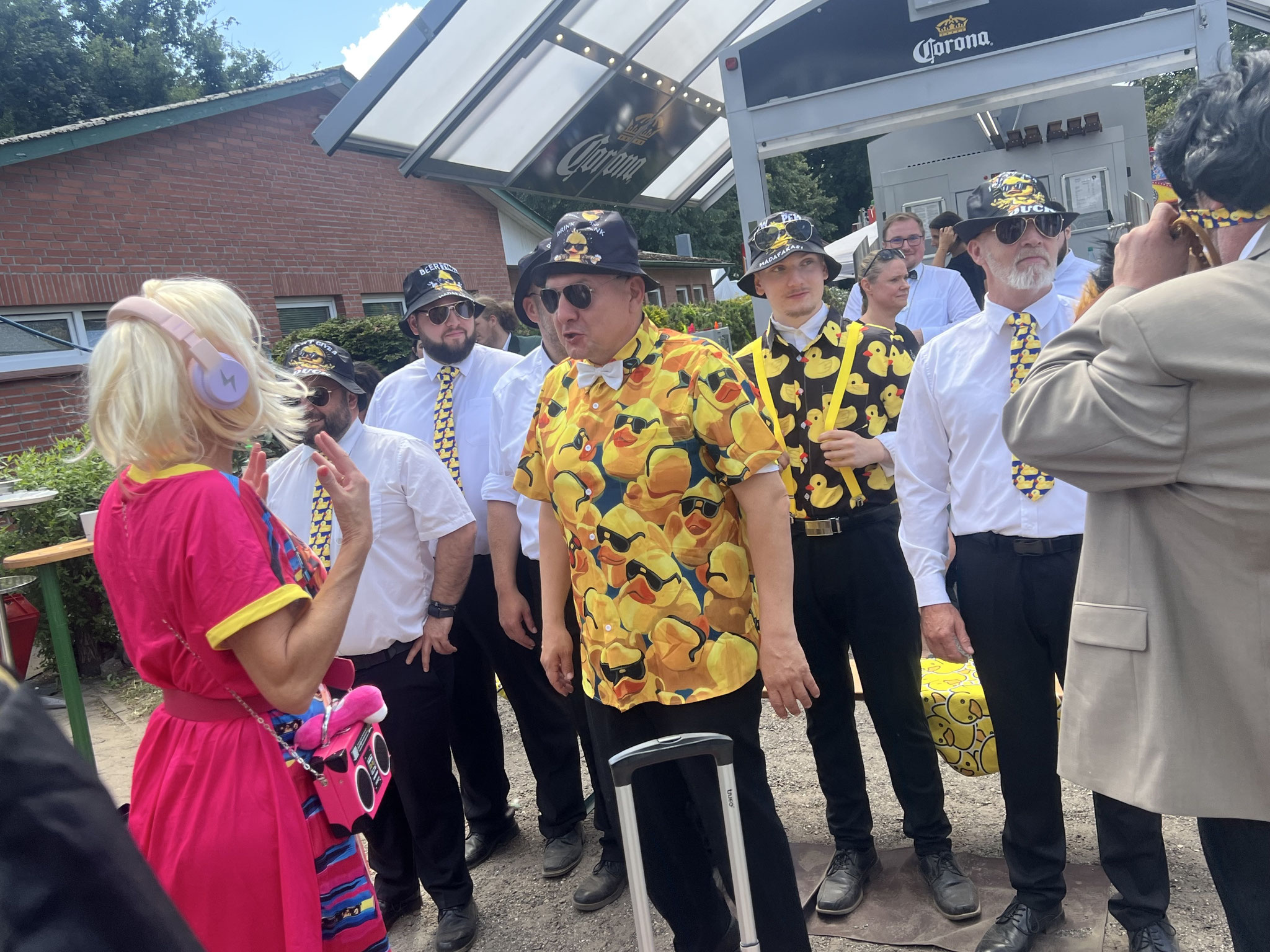 Los ging’s am Freitag: Über 20 von uns, fein rausgeputzt, bester Stimmung und tanzlustig, stürmten das Festzelt beim SV Fischbek. Arne Boltze, der 1. Vorsitzende, hat sich so über unseren Besuch gefreut, dass er uns in seiner Rede gleich lobend erwähnte. Wir nickten höflich, prosteten zurück – und tanzten danach die halbe Nacht durch. Musik top, Wetter perfekt, Stimmung sowieso unschlagbar!