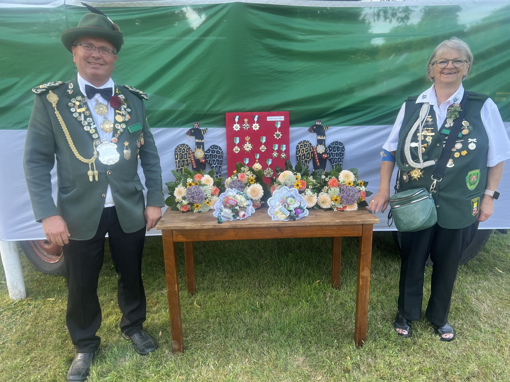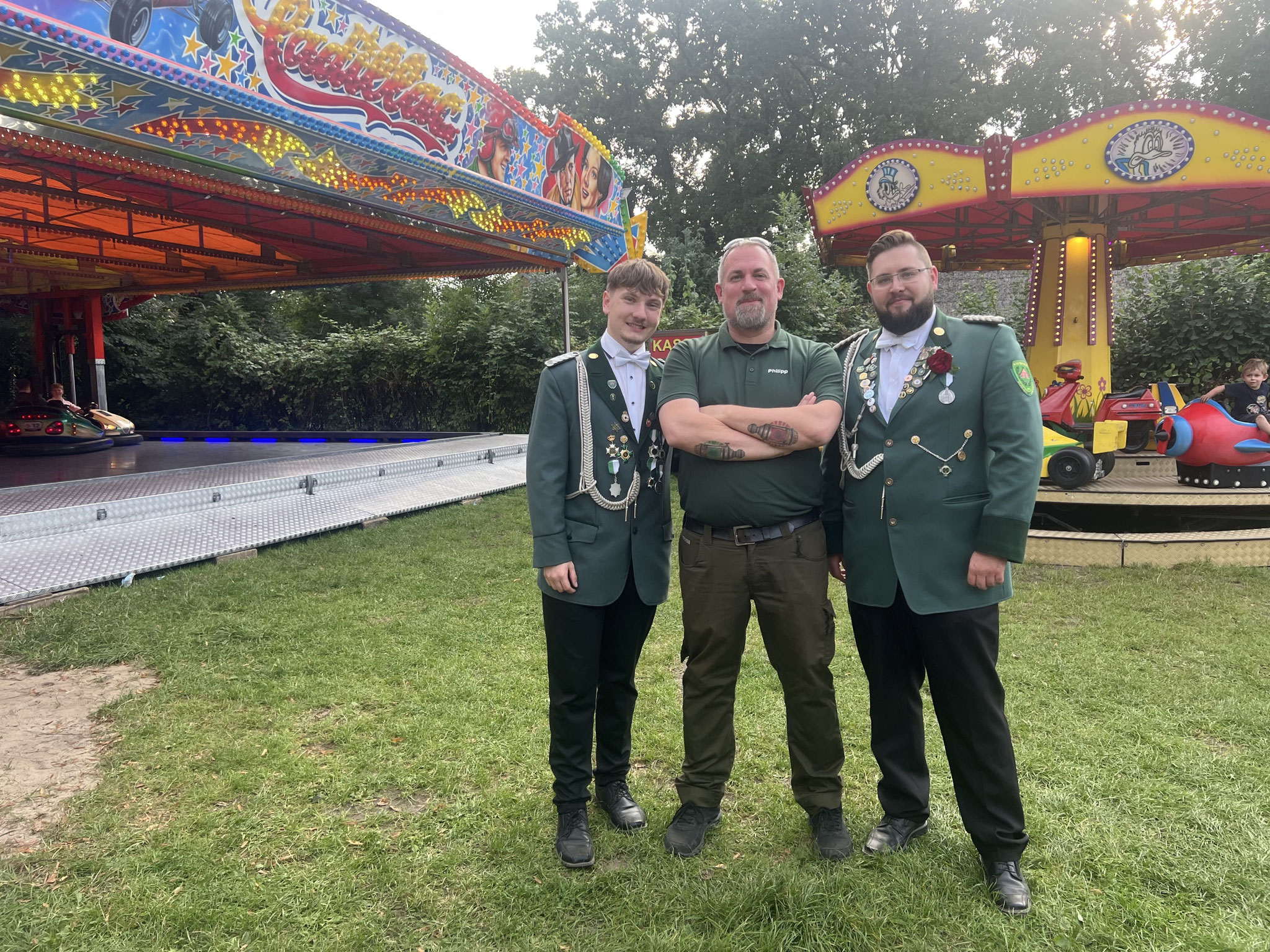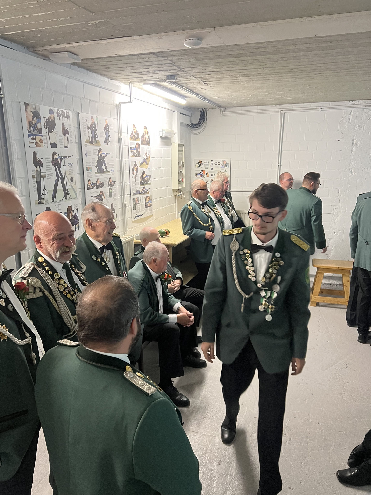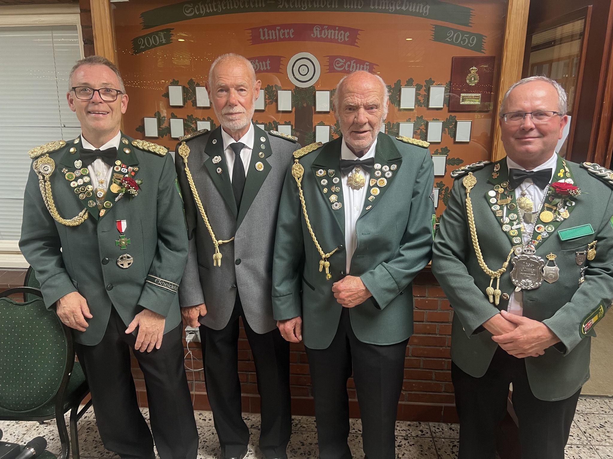 Am Nachmittag kam es schließlich zum spannendsten Moment: Beim Vogelschießen um die Königswürde lieferten sich Maurice, Andreas, Torsten und Rainer ein packendes Duell. Um 16:33 Uhr fiel der Rumpf des von Norbert gebauten Königsvogels nach 340 Schüssen. Der neue Schützenkönig Rainer, seit 23 Jahren Vereinsmitglied und im Ort als „Landesrainer“ bekannt, ernannte André, Maurice und Mario zu seinen Adjutanten.