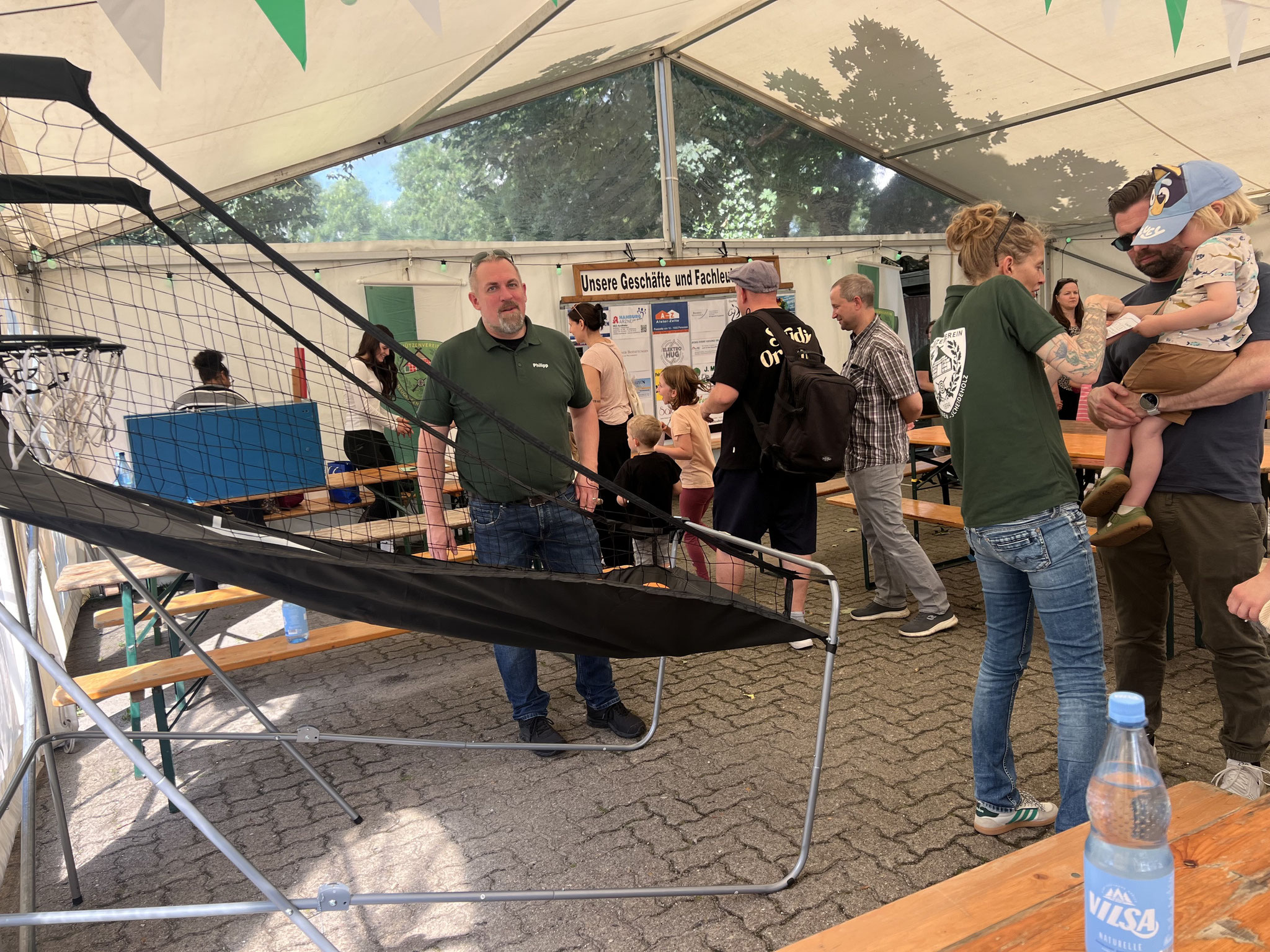 Über 20 Teilnehmer stürzten sich auf die eigens vorbereiteten Gesellschaftsspiele – und das mit Eifer, Elan und einer gesunden Portion Wettkampfgeist. Ob beim Cornhole, beim Maxxen mit XXL-Würfeln oder beim kultigen Nagel-in-Holzbole-Schlagen: Es wurde geworfen, gezielt und gehämmert, was die Muskelkraft (und das Bier) hergaben.