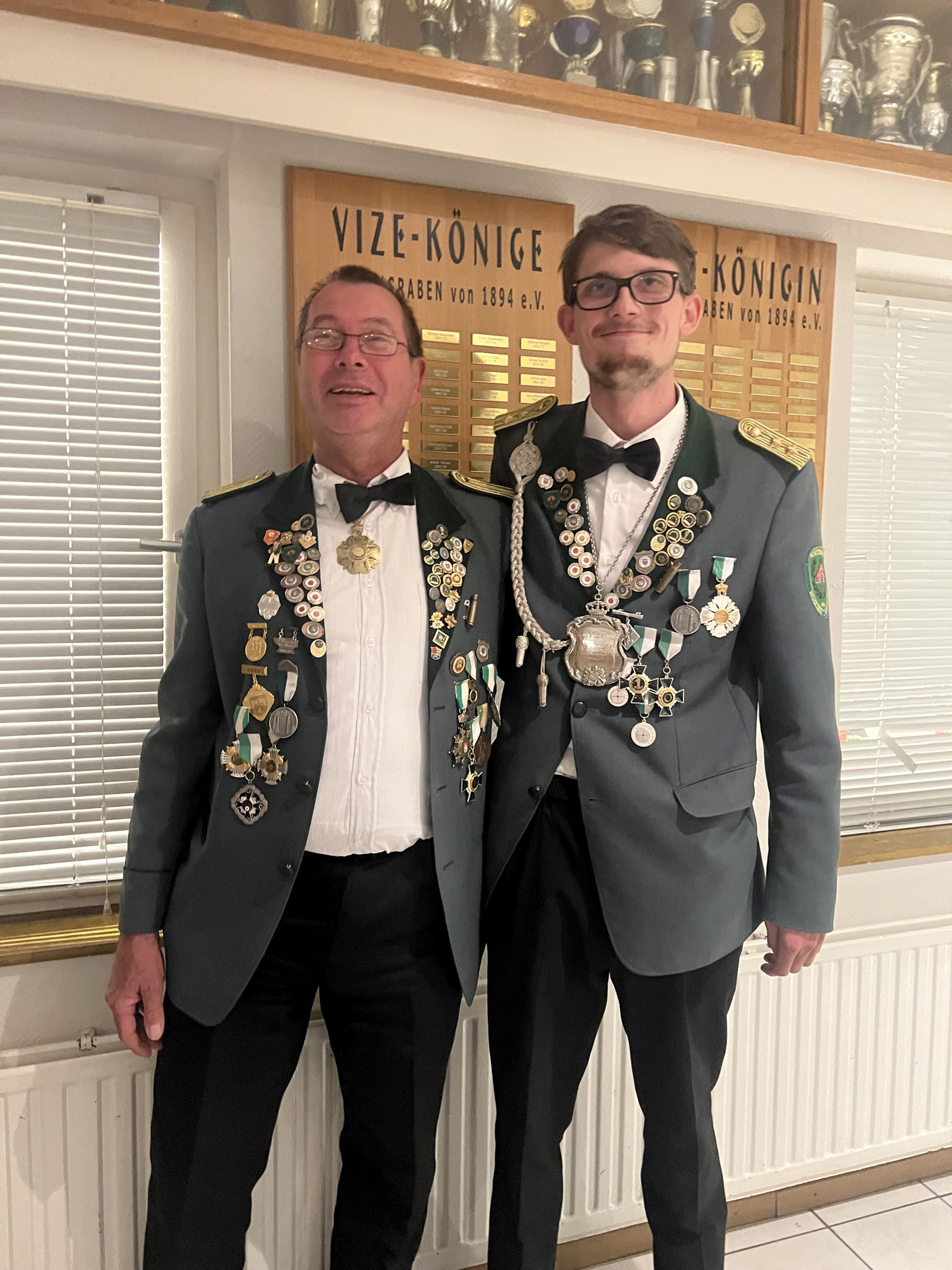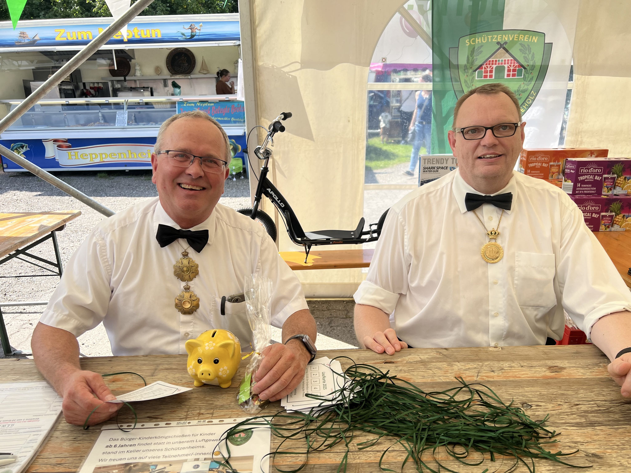 Am Donnerstag begann der inoffizielle Teil des Schützenfestes mit dem Anbringen des Fotos vom Schützenkönig Gerald an die Königstafel, mit anschließender Königsgeldübergabe sowie der Übergabe und Befestigung des Königsschildes der Damenkönigin Martina an die Damenköniginnentafel. Unter Applaus der Anwesenden führten Jens und Damenleiterin Nicole die Zeremonien an. Beide Momente wurden mit einem dreifachen „Gut Schuss“ gewürdigt.