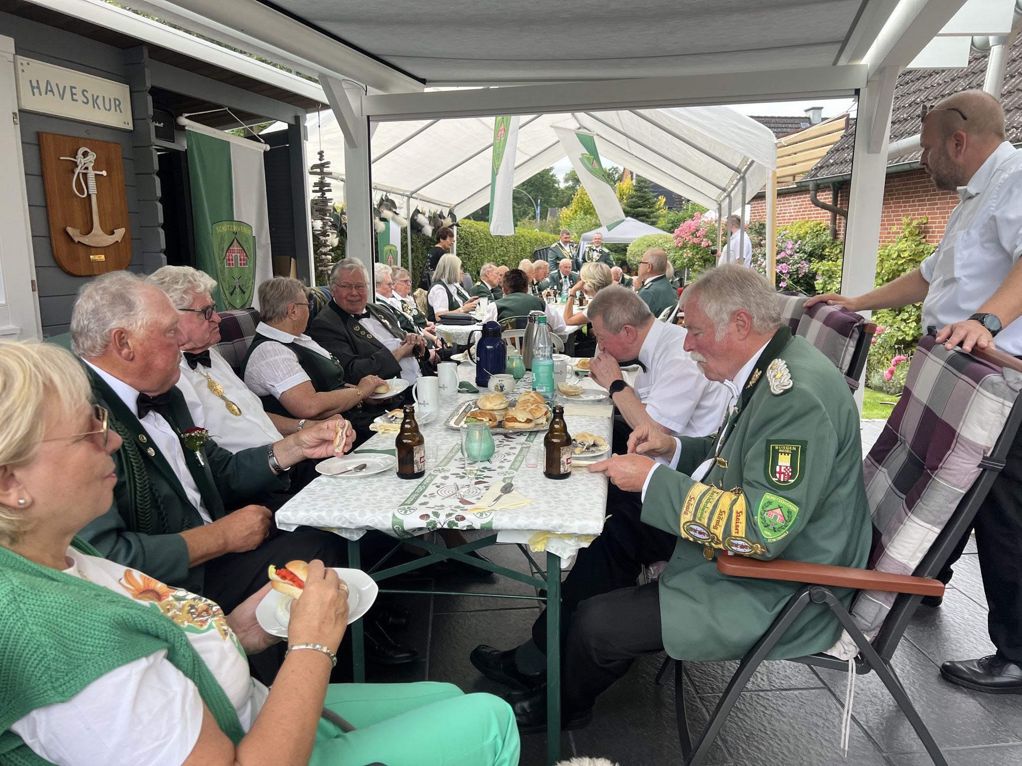 Am Samstag ging’s direkt weiter: Königsgrillen beim Zoll an der Sieker Landstraße. Ehrhard begrüßte uns mit offenen Armen, Birgit hatte ein fantastisches Kuchenbuffet vorbereitet. Nach Torten, Pokalen, Preisen und Orden gab es ab 17 Uhr Leckeres vom Grill, Salate und viele gute Gespräche – es wurde viel gelacht, erzählt und natürlich ordentlich geschlemmt.