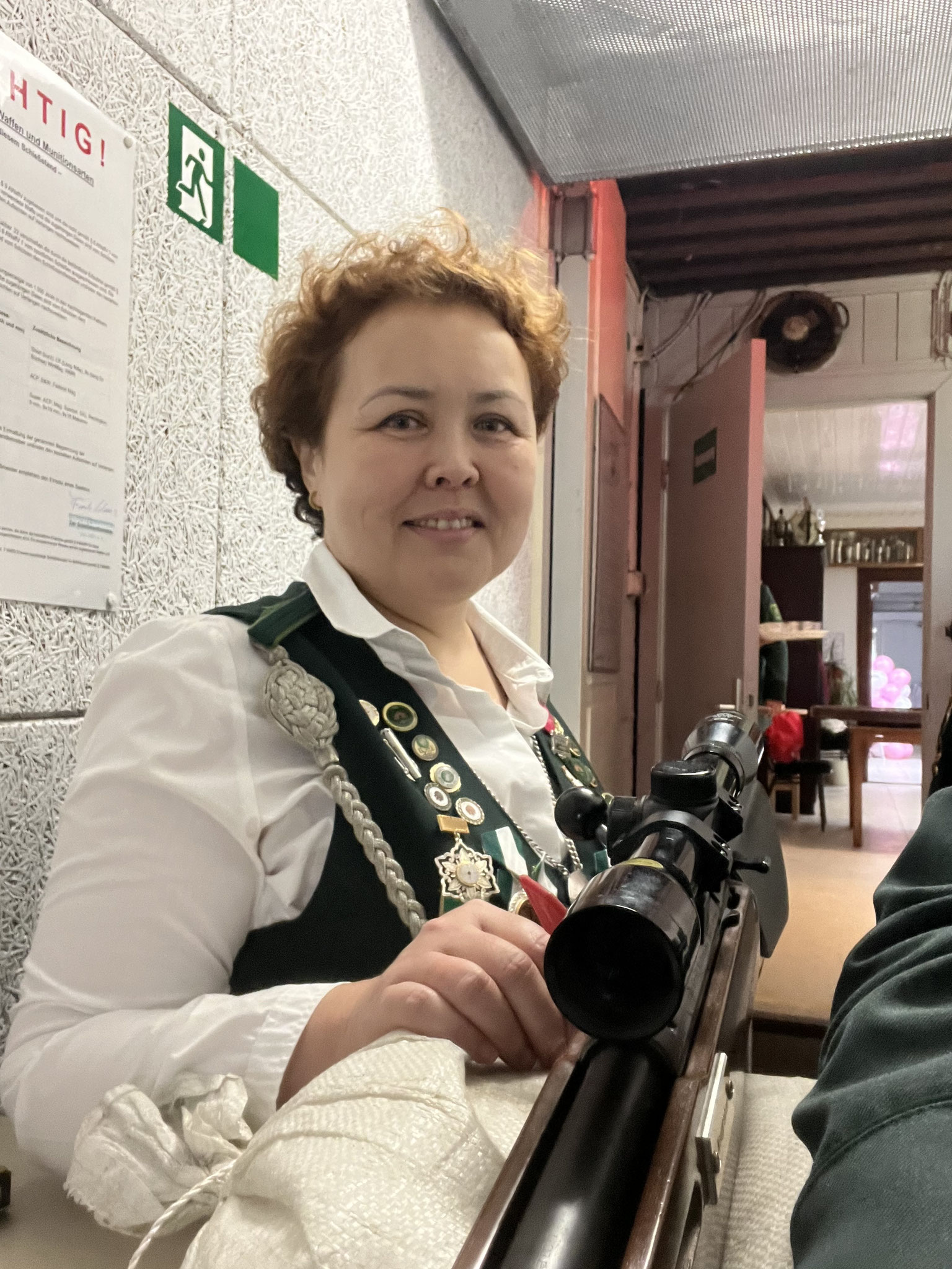Beim Schießwettbewerb zeigten die Teilnehmerinnen und Teilnehmer ihr Können. Elf Damen traten mit dem Kleinkalibergewehr, 21 Herren mit dem Luftgewehr an, um die von Norbert Ranft gefertigten Holzvögel zu Fall zu bringen. Jedes abgeschossene Teil wurde mit einem kräftigen „Gut Schuss!“ gefeiert. Für besondere Begeisterung sorgte Yvonne Helmerichs, der der entscheidende Treffer auf den Rumpf gelang. Gemeinsam mit Martina Andreas und Marion Schankin hatte sie bis zuletzt um den Sieg gekämpft und wurde von den Anwesenden mit großem Applaus gefeiert.